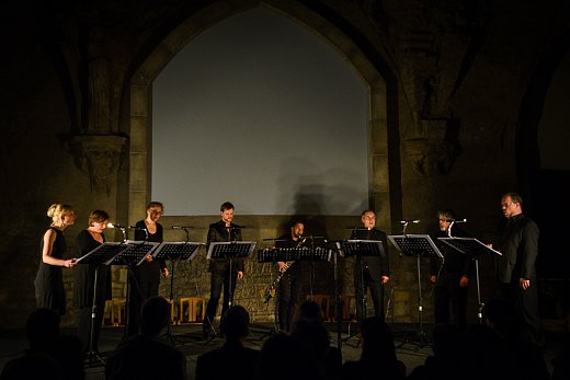 Německý komorní sbor – nebo lépe řečeno „sbor sólistů“ – Neue Vocalsolisten Stuttgart je považován ve svém oboru za průkopnický a referenční. Třicetiletá činnost NVS ve spolupráci s předními skladateli přinesla rozšíření technických a výrazových možností vokální hudby jednak ve směru průzkumu možností lidského hlasu daleko za hranice tradičního zpěvu, jednak směrem ke komplexnosti a univerzálnosti instrumentálního typu hudební sazby. Ansámbl každoročně nastuduje dvacítku nových skladeb a pohybuje se s jistotou na poli sahajícím od koncertní hudby přes současnou operu po projekty na pomezí hudby a literatury. Pro vystoupení v rámci festivalu Contempuls byla vybrána trojice skladeb pokrývající širokou paletu výrazových možností lidského hlasu, od čistě zvukové kompozice Brahima Kerkoura (jež je součástí aktuálního projektu NVS Mediterranean Voices) po vrstevnaté dílo Bernharda Langa, které vedle sedmi sólových hlasů zahrnuje i virtuózní part basklarinetu, jehož se ujme Angličan Gareth Davis.